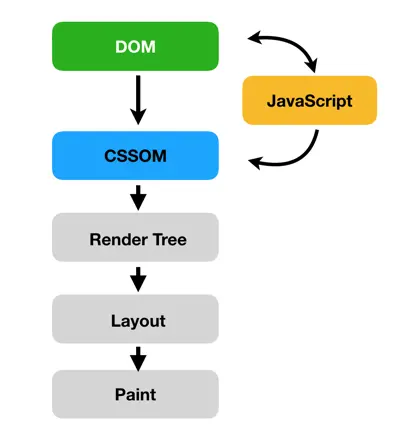 JavaScript可以查询和操作DOM和CSSOM,正如前面介绍的,HTML解析过程中构建DOM,当遇到JavaScript就停止DOM构建执行JavaScript,如果被执行的JavaScript是放置在head附近,那么很可能要被操作或者查询的DOM还没有构建到DOM当中。
