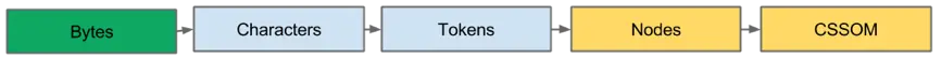 CSSOM有着一个和DOM构建相似的流程:字节 → 字符 → 令牌 → 节点 → CSS对象模型。
