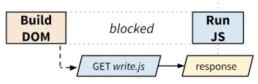 则浏览器的渲染会阻塞直到write.js的请求返回后,并执行JavaScript后,继续。