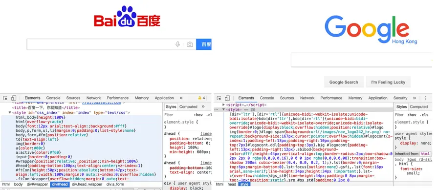 (百度和Google将样式inline在head中)