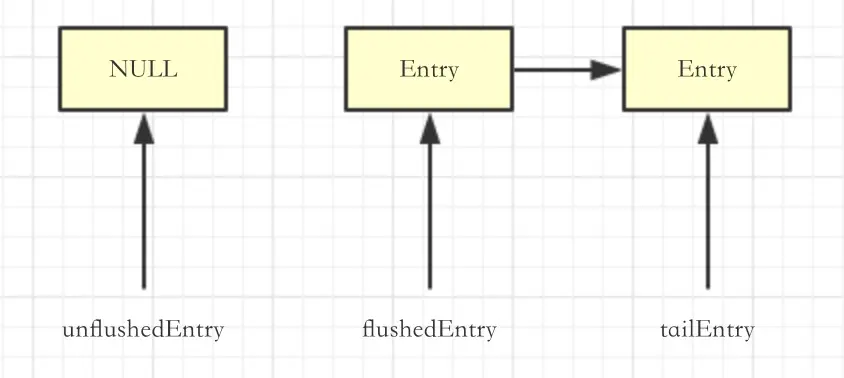 然后是循环所有的flushedEntry,这里,我们回顾一下上面addFlush之后的图,其实循环中会不停地把flushedEntry前移,直到flushedEntry和tailEntry中的节点全部都被处理。isFlushEntry的代码:e != null && e != unflushedEntry;,其实就是,不是unflushedEntry的都是flushedEntry。