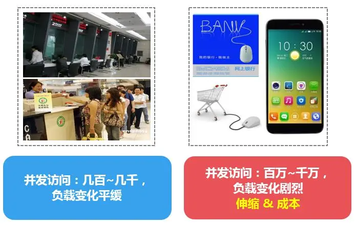 那么另外一个重要的因素,就是在传统模式下,不管是商场还是银行,它的访问量很稳定,商场/银行扩建时有充分的时间把整个IT数据库系统扩展开来。而现如今,我们的网站可能上个星期访问量还是十万级别的,几天时间就可能上涨了近十倍,传统关系数据库系统硬件的半年左右的购买实施周期无法适应业务的变化。