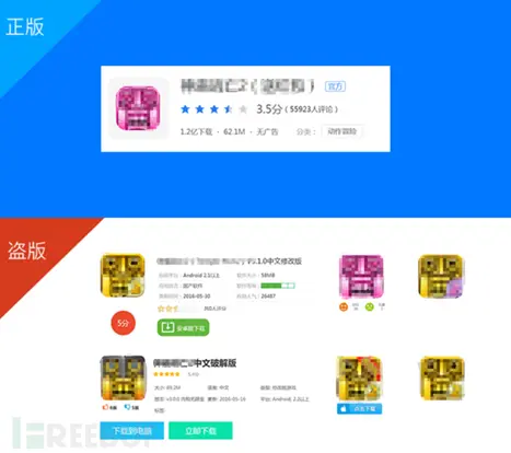 重打包不仅严重危害产品和用户的利益,还会对公司的口碑产生极度恶劣的影响。如下图所示,神庙逃亡即被打包党们进行了二次打包。