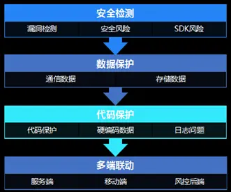 一般而言,移动安全的进阶包括四大步骤:安全监测、数据保护、代码保护和多端联动。