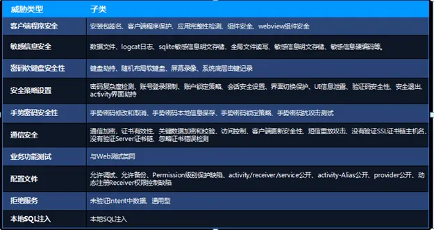 安全检测是移动开发安全防护的第一步,通常需要检测客户端程序安全、敏感信息安全、密码软键盘安全性、安全策略设置、手势密码安全性、通信安全、业务功能测试、配置文件、拒绝服务、本地SQL注入等方面。