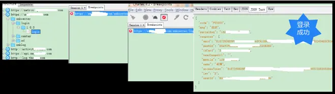 某APP登录过程中敏感信息已经加密,拦截A登录设备请求RO就能获取加密后的数据,在另外一台设备B上拦截登录请求R1,把RO数据填充到R1中,B设备即可显示登陆成功。