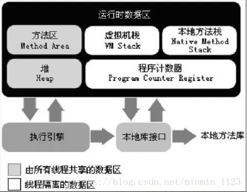 可见,运行时数据区被分为线程私有数据区和线程共享数据区两大类: