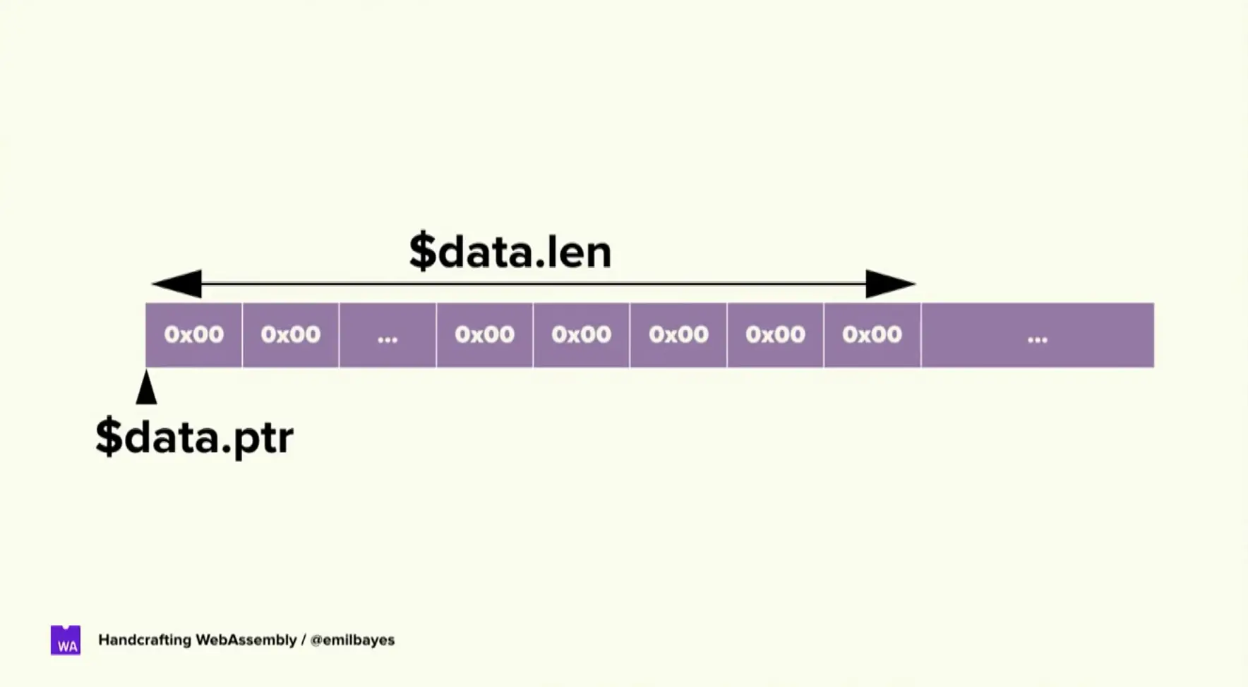 那我们是如何解析数组的呢?答案是通过指针(pointer)和数组的长度(length)。在这里指针也就相当于数组的下标(index),长度也就是数组分配的内存大小。
