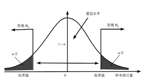 通常情况下,在统计学上有一个概率值 α ,也称为显著性水平,当 P 值小于 α ,即可以推翻原假设,选择备择假设。α 可以选择为 0.05,0.1等。我们选择的是比较常用的 0.05 。
