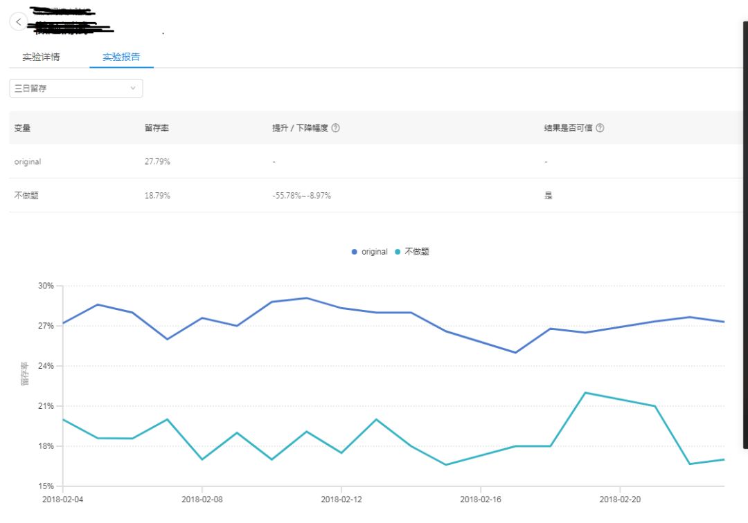 在实验运行一段时间之后,如果置信区间的上下限同为正,说明实验结果是统计显著的,并且实验版本优于对照版本;如果同为负,实验结果也是统计显著的,但是实验版本劣于对照版本;如果置信区间为一正一负,则说明版本间差异不大。