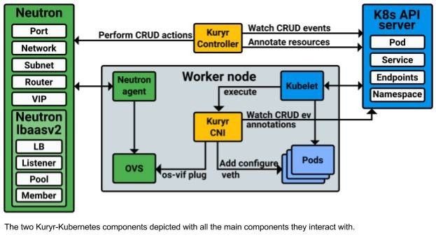 OpenStack 里面有一个项目 Kuryr 可以很好地去做这件事情,完全使用开源的 OpenStack 和 Kubernetes 可以尝试集成一下。
