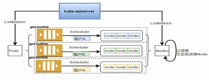 并且通过预过滤无空闲资源的 Node,调整 predicate 算法进行预过滤,进一步减少调度规模。