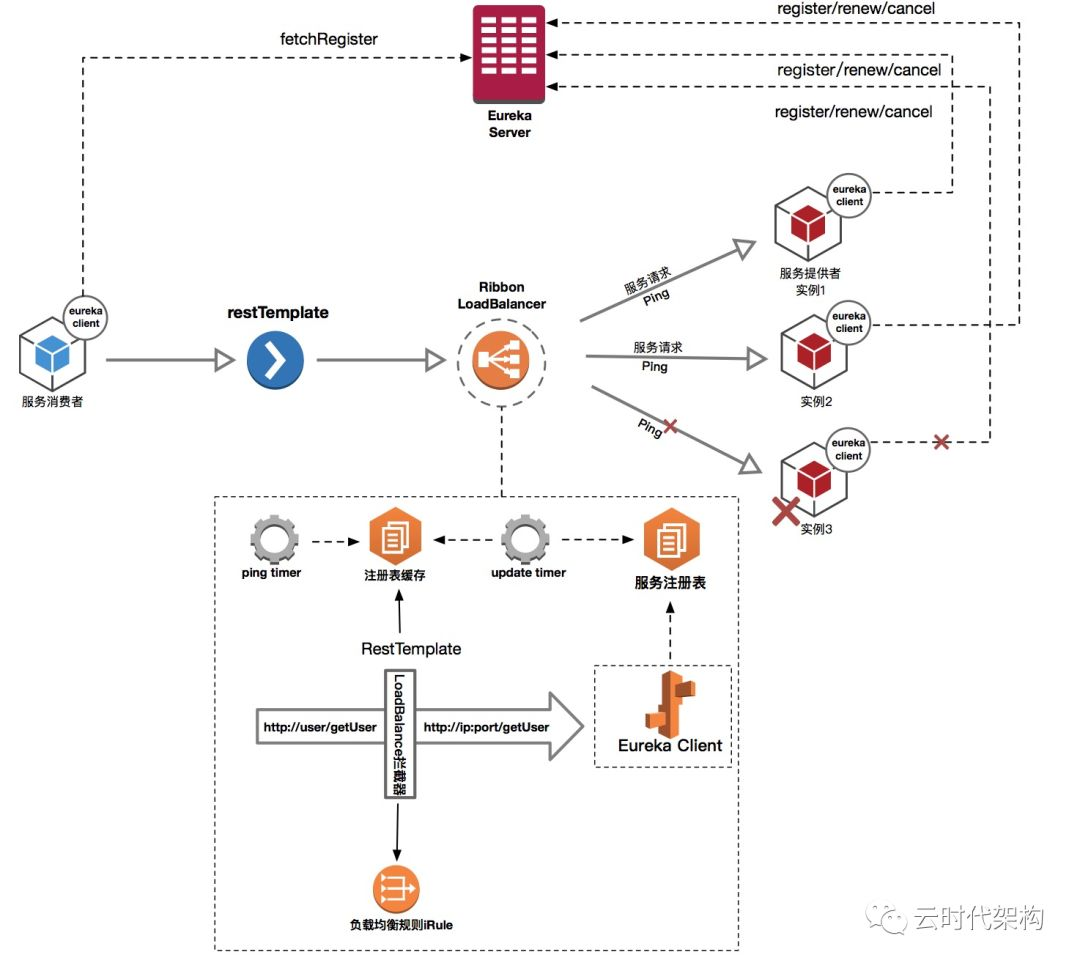有了注册发现功能,客户端通过服务注册表发现实例清单并决定要连接哪个实例,在客户端做负载均衡,基于客户端做负载均衡相比服务端负载均衡有诸多好处:首先节省了硬件均衡设备,减少了运维成本,其次可以实现多种负载均衡策略比如响应感知的负载均衡策略。