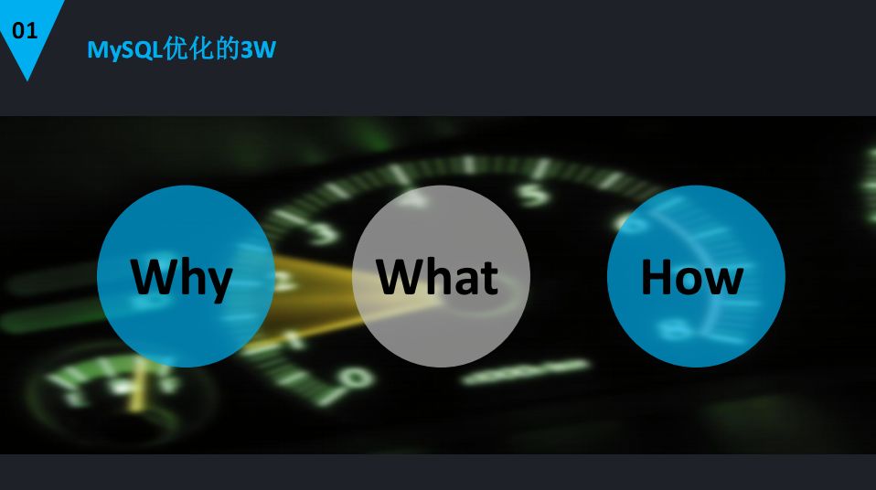 性能优化就是我想让我的MySQL跑的更快、更顺畅。在我们开始MySQL性能优化之前,我想提出MySQL性能优化的三个关键点。Why?What?How?为什么我们要做性能优化?