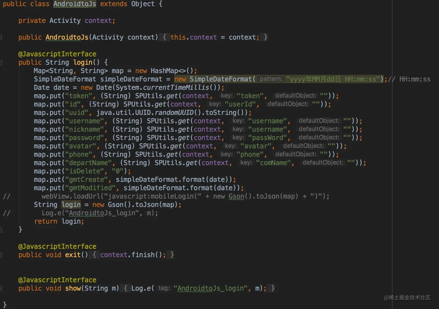(1)login是一个登陆的方法,用于给js传递在Android端登陆的用户信息