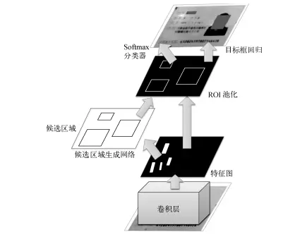 对于人手持证件场景,由于证件目标在图像中所占比例过小,直接提取微小候选目标会导致一定的定位精度损失。为了保证高召回和高定位精度,可采用由粗到精的策略进行检测。首先定位卡片所在区域位置,然后在卡片区域范围内进行关键字检测,而区域定位也可采用Faster R-CNN框架,如图11所示。