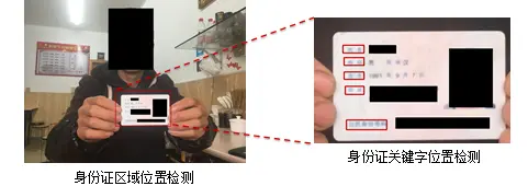 对于受控场景(如身份证),我们将文字检测转换为对关键字目标(如姓名、身份证号、地址)或关键条目(如银行卡号)的检测问题。基于Faster R-CNN的关键字检测流程如图9所示。为了保证回归框的定位精度,同时提升运算速度,我们对原有框架和训练方式进行了微调。