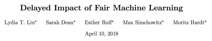 来自 UC Berkeley EECS 的 Lydia T. Liu、Sarah Dean、Esther Rolf、Max Simchowitz 和 Moritz Hardt 的论文同样也获得了最佳论文奖。由于机器学习系统易受到数据偏见而导致歧视性行为,人们认为有必要在某些应用场景中用公平性准则约束系统的行为,并期待其能保护弱势群体和带来长期收益。该研究探索了静态公平性准则的长期影响,发现结果和人们的期望相去甚远。