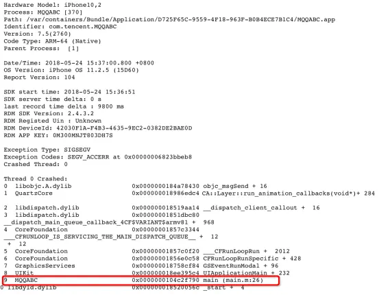 从Crash报告可以看到几个关键信息: