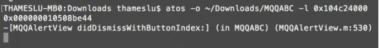 至此,我们知道图1那个只有main信息的堆栈产生的Crash是在-[MQQAlertView didDismissWithButtonIndex:]的第530行,产生Crash的原因是调用了respondsToSelector:,已经十分接近答案了,但是MQQAlertView是管家一个通用的弹窗组件,所以还需要知道是哪个页面出现了这个Crash。