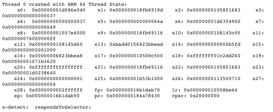 于是,我们查看Crash时各寄存器的值(见图3),其中x0是发生Crash的函数的第一个参数,针对objc_msgSend来说x0同时表示指向发生Crash的对象的地址,x1是Crash的函数的第二个参数,在objc_msgSend中表示Crash的对象调用的selector,RDM很贴心,已经帮我们查询出该selector为respondsToSelector:。如果x1是我们工程中自己写的一个方法就很容易分析问题了,直接查找工程代码,定位到该函数即可找到原因,可是respondsToSelector:调用的地方太多了,怎么办呢?我们还要继续往里挖。