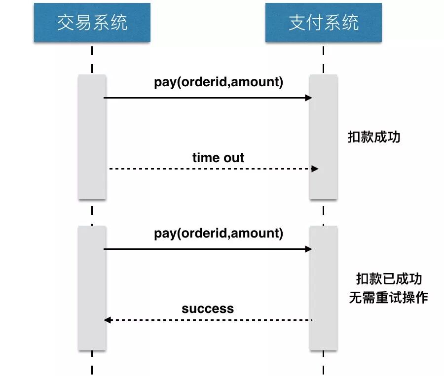 如果调用是成功或者失败都不要紧,因为状态是明确和清晰的,但如果出现超时的情况,就不知道请求是成功还是失败了。