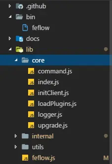 Feflow中的插件分为内外两类,外部插件允许开发者在npm上下载其他feflow的插件搭配使用;内部插件则由作者维护开发,是集成在feflow中的,其都是在core提供的init方法中加载。但是插件处理方法和加载方式不同。