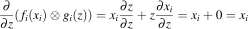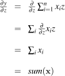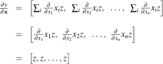 The partial derivative of the function with respect to x, , performs the usual scalar derivative holding all other variables constant.