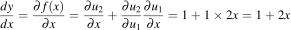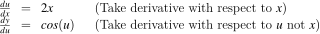 That procedure reduced the derivative of to a bit of arithmetic and the derivatives of x and