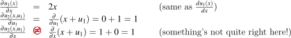 It's a good idea to derive these yourself before continuing otherwise the rest of the article won't make sense. Here's the Khan Academy video on partials if you need help.