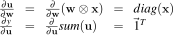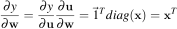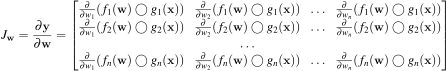 The Jacobian with respect to w (similar for x) is: