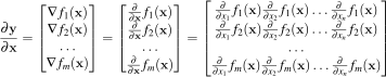 The Jacobian organizes the gradients of multiple functions into a matrix by stacking them: