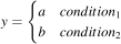 The following notation means that y has the value a upon and value b upon