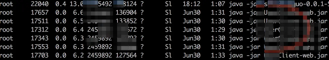 ps -aux | sort -k4nr | head发现了很多之前的任务还在运行如下图: