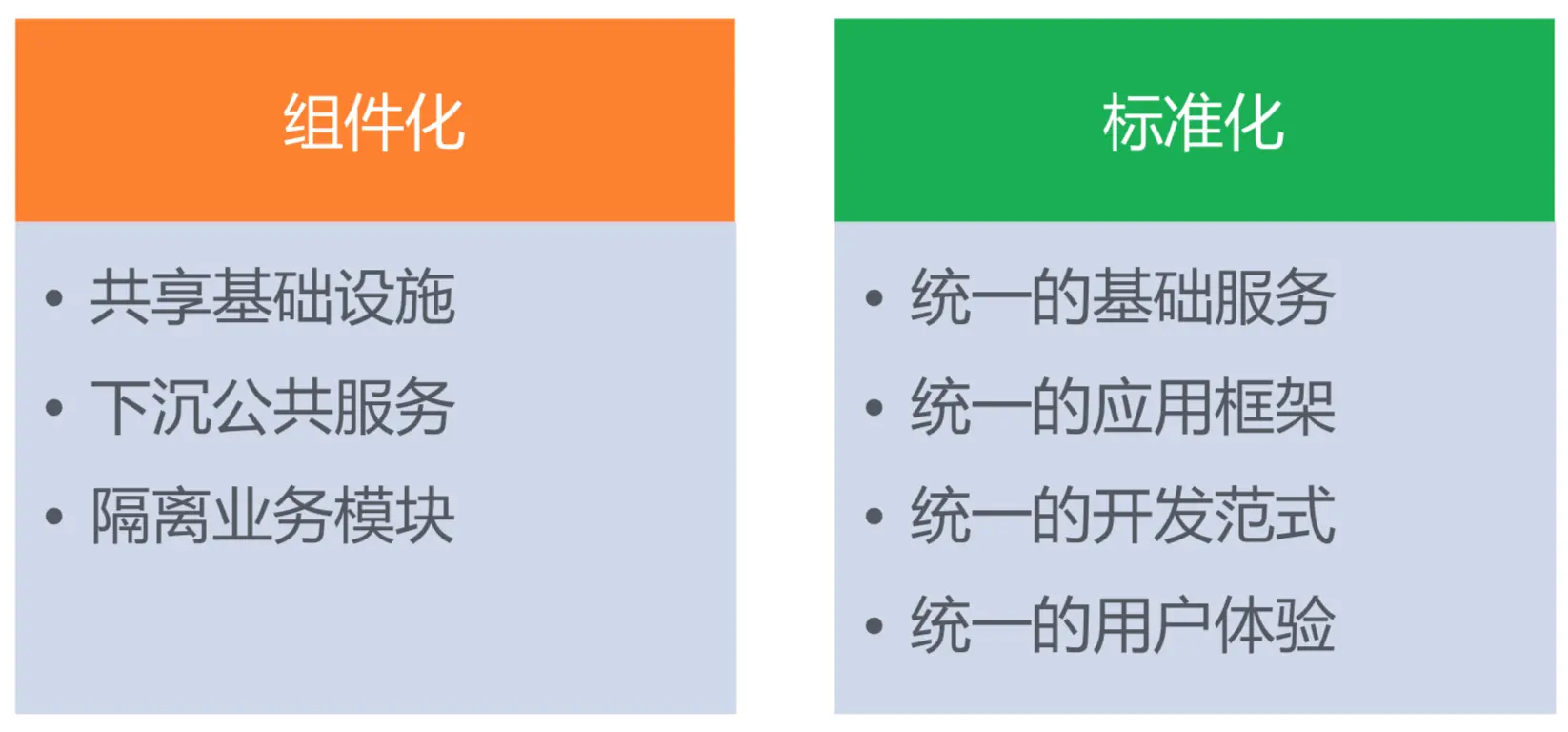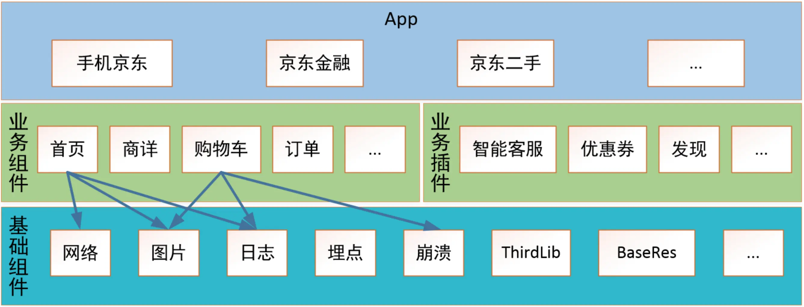 首先介绍了为什么要做性能优化,作者的观点是用户第一,接着展示了当前LinkedIn注册用户超5亿,20多个业务线,团队开发人员200多人,代码行数累积400万;然后作者引出性能问题往往是项目规模太大引起的,因此认为合理的架构设计可以将问题化繁为简,要解决好性能问题,首先就需要好的架构设计;如下图所示,项目组件化应该算是任何项目架构变更的必经之路,将不同的模块分离出来,拆成独立的组件,可以独立的运行。