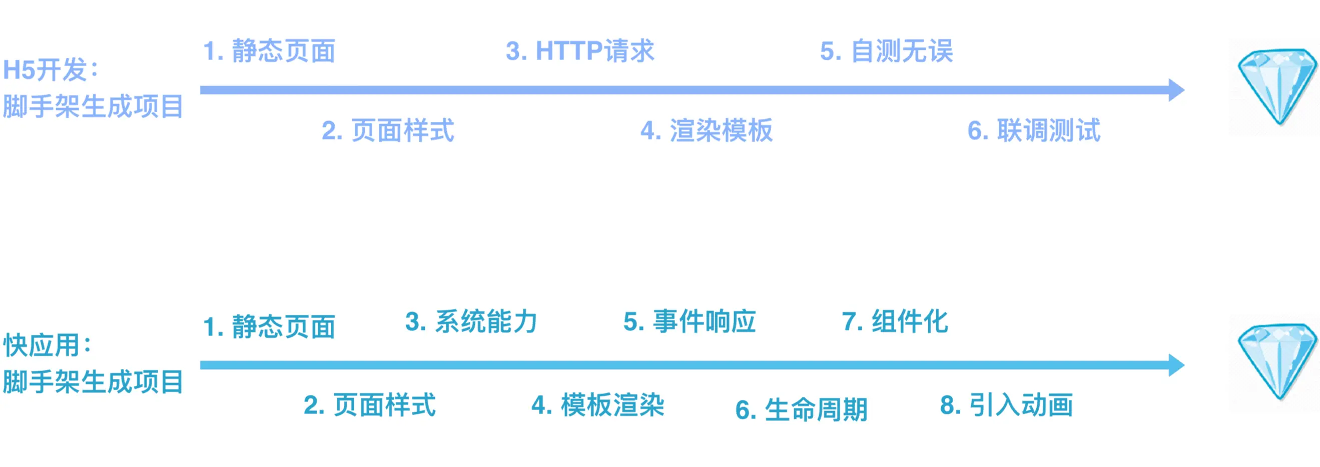 快应用是九大手机厂商基于硬件平台共同推出的新型应用生态,用户无需下载安装,即点即用,享受原生应用的性能体验。 首先,作者用2段小视频展示了快应用的使用场景和多场景融入的一个示例。快应用与H5均由脚手架生成项目,作者进行了对比和分析,如下图。