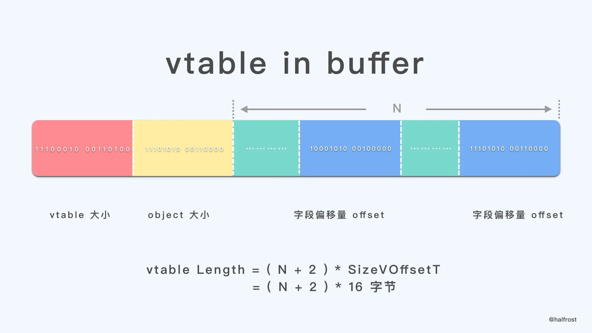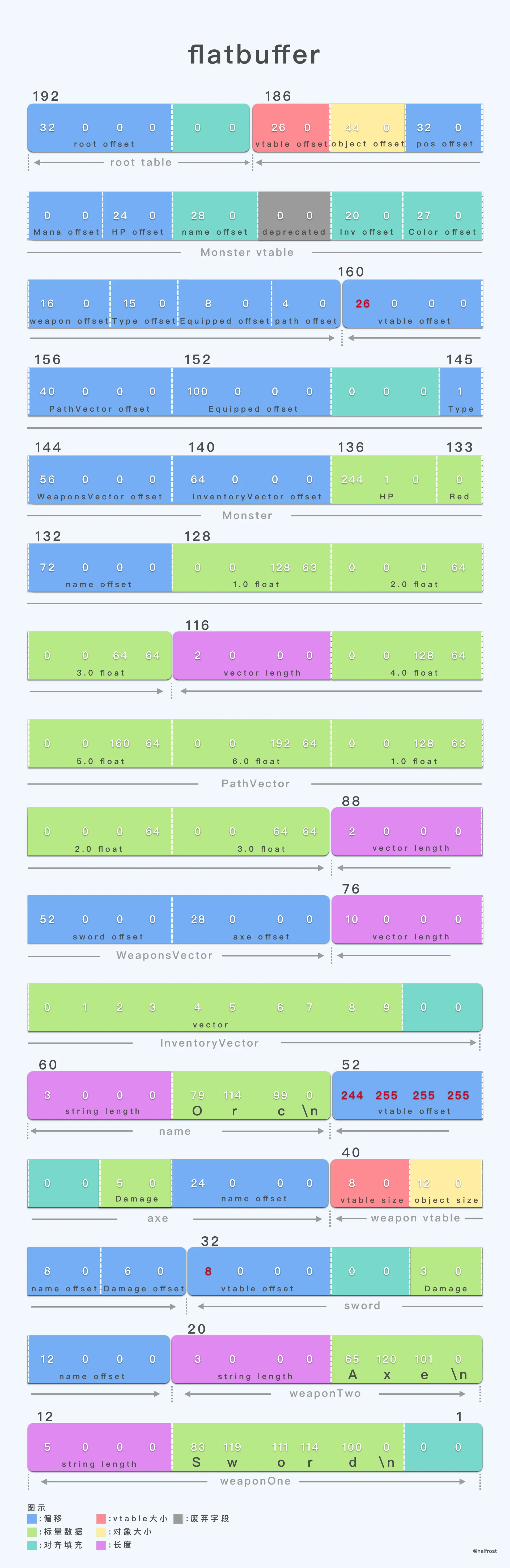 上图中二进制流上面标的数字,为字段的 offset 值。二进制流下方标识的是字段名。