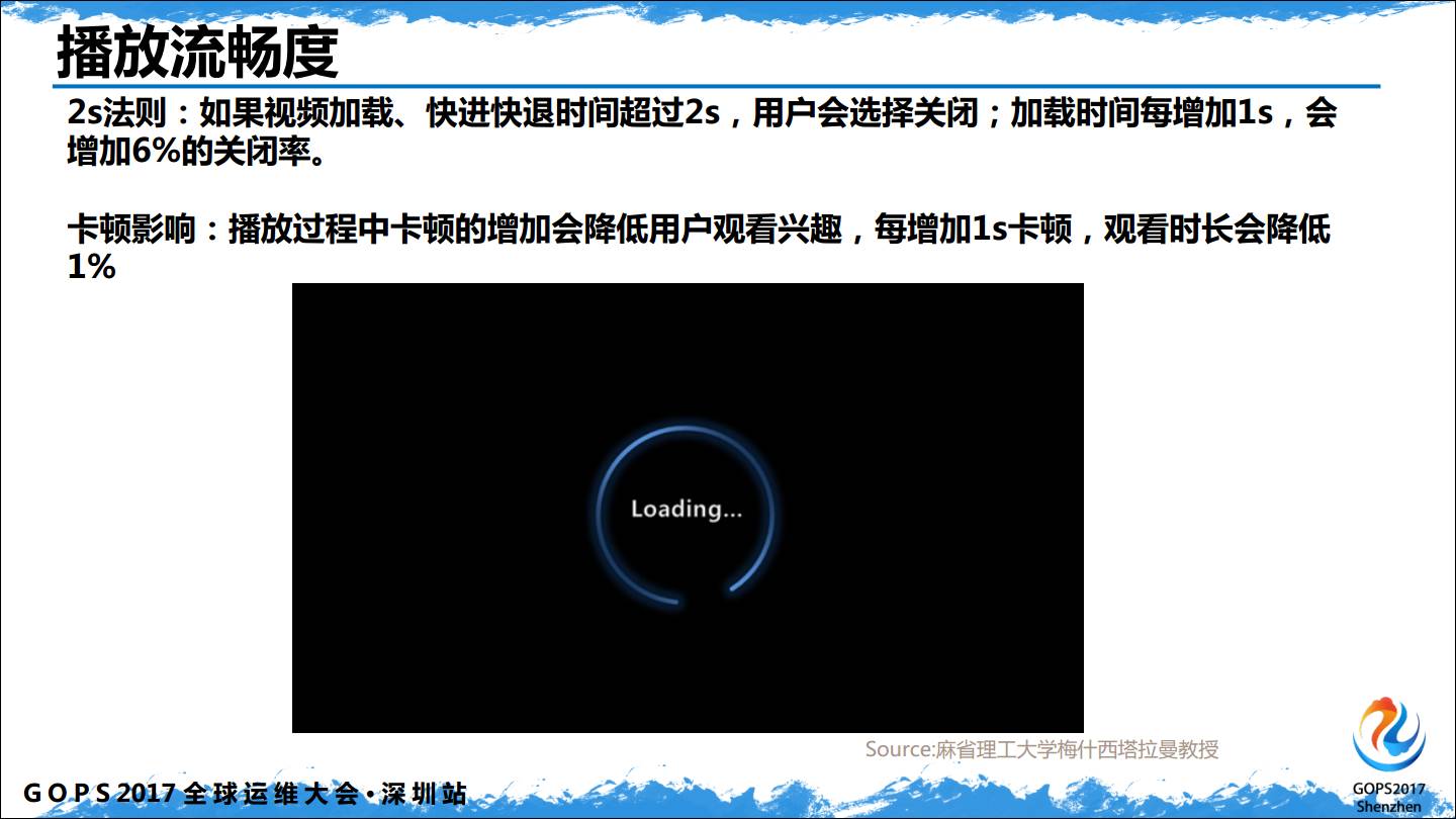 第一个是2秒法则,当一个用户打开视频的时候,如果超过两秒时间,用户这时候选择离开的可能性会逐步增大,每增加一秒钟的时间,打开时间超过一秒,用户的离开率可能会增加6%,我们就要赶在用户两秒之内看到我们的画面,用户是上帝,不能考验他们的耐心,超过两秒人就会走。