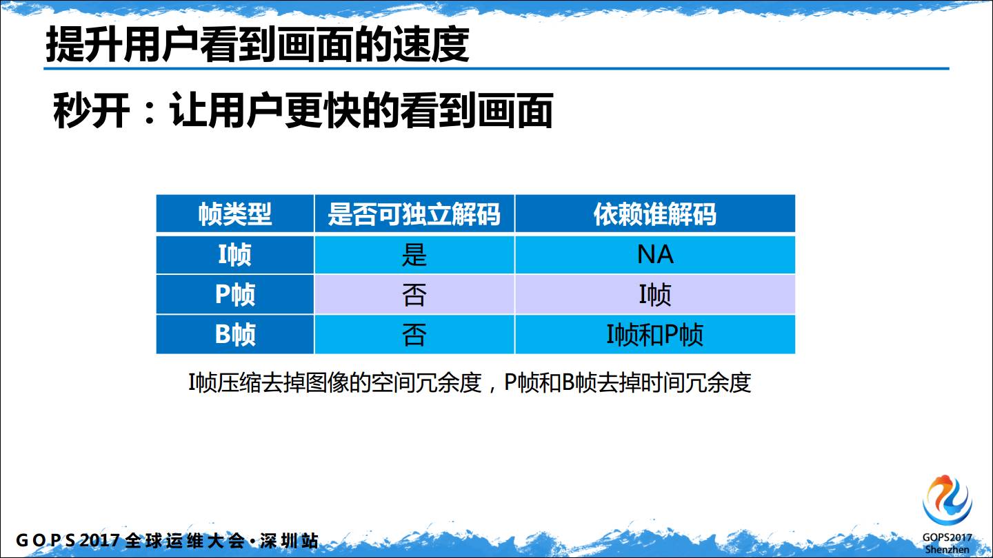 我们就用了一个技术,让用户更快看到画面的技术,首先我都是下I帧,这个和播放器一起去改造,用户下到I帧马上画面就出来,降低用户的时间,降低了接近两百毫秒,让我们的上帝去看到画面的速度又提升了两百毫秒。