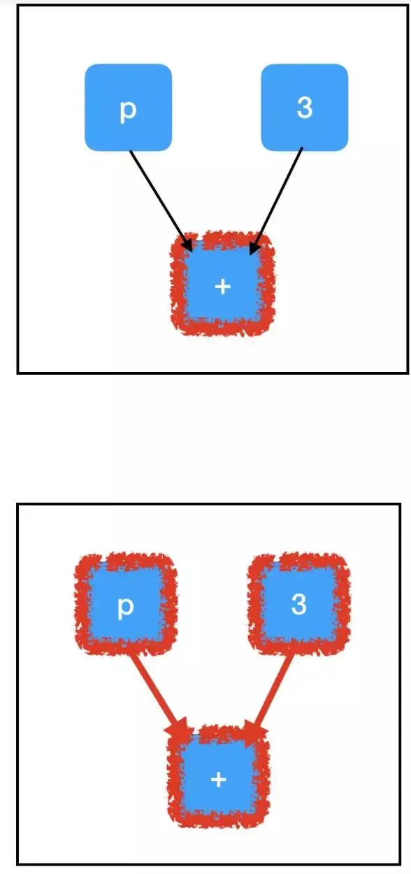 当我们在依赖于图中其他节点的节点上调用 sess.run() 时,我们也需要计算那些节点的值。如果这些节点具有依赖关系,那么我们需要计算这些值(依此类推……),直到达到计算图的「顶端」,即节点没有父节点时。