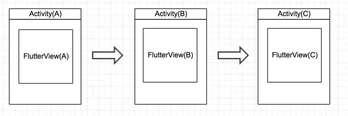 Flutter设计之初是想统一Android和IOS的界面编程,所以理想的基于Flutter的apk只需要提供一个MainActivity做入口即可,后面所有的页面跳转都在FlutterView中管理。但是,如果是一个已有规模的app接入Flutter开发,我们不可能将已有的Activity页面都用Flutter重新实现一遍,这时候就需要考虑本地页面和Flutter页面之间的跳转交互了。iOS可以方便的管理页面栈,但是Android就很复杂(Android有任务栈机制,低内存Activity回收机制等),所以通常我们还是使用Activity作为页面容器来展示flutter页面。这时有两种选择,可以每次启动一个Activity就启动一个新的FlutterView,也可以启动Activity的时候复用已有的FlutterView。
