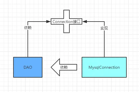 这里就违反了依赖倒置原则,高层模块DAO强耦合了底层模块MysqlConnection。如果系统需要更换数据库为SqlServer,我们就不得不去修改Dao类,增加一个SqlserverConnection类,这又违反了面向对象设计的开闭原则。例子中的Dao是一个不稳定、随时会因为底层模块的变更而出现BUG的类。