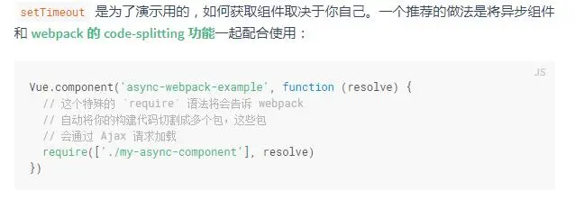 Vue官网的示例如下,采用异步组件和webpack的code-splitting结合