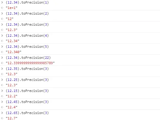 toPrecision方法用于四舍五入时不太可靠,跟浮点数不是精确储存有关。