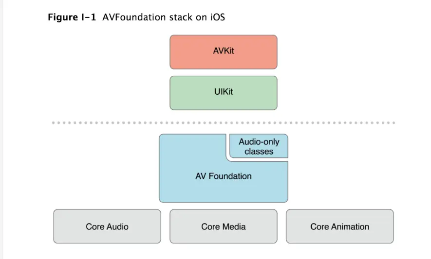 在iOS上多媒体的处理主要依赖的是AVFoundation框架,而AVFoundation是基于CoreAudio、CoreVideo、CoreMedia、CoreAnimation之上高层框架,在AVFoundation框架之上苹果还提供给我们更高层一些处理媒体数据的框架。