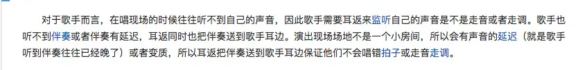 清唱的功能很简单,就是通过麦克风录制声音,然后添加音效或者做一些处理之后再输出,因为不要配乐,所以省略了一大部分操作(添加配乐完整K歌在下期会讲到),但是有一个问题就是耳返,也叫返送:
