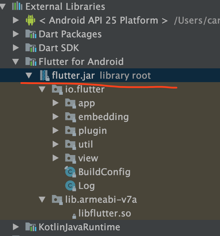 Flutter Engine编译完成之后会生成一个FlutterJar包,提供给Android和Flutter代码交互的过程