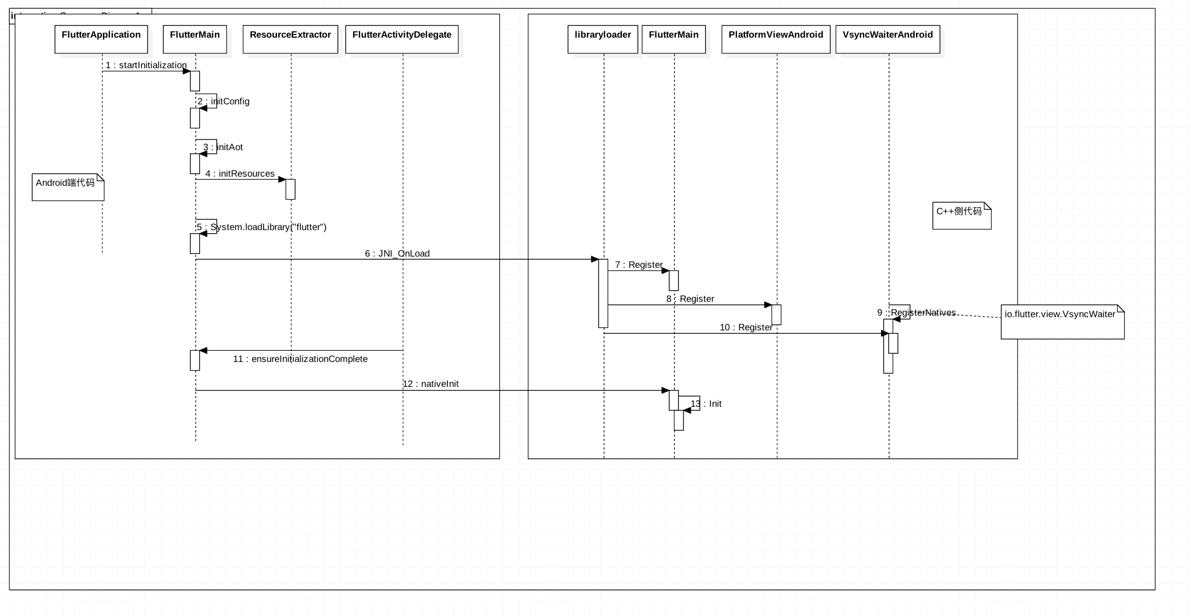 * 6.在FlutterMain.cc中调用`Init()`初始化在java端抽取的flutter代码,把相关的文件路径传递到JNI中,进行初始化,JNI层可以读取的文件路径