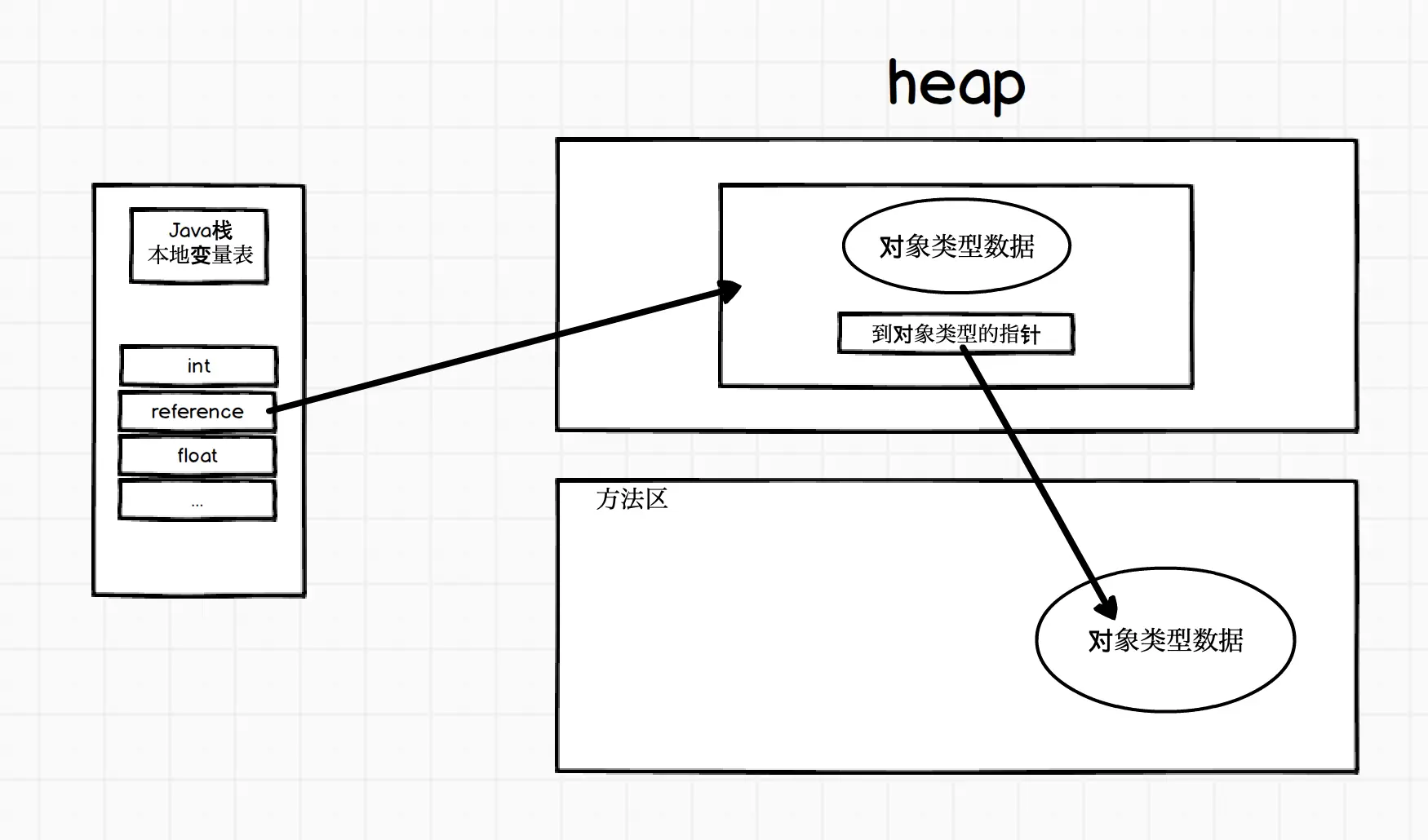 Java程序要通过栈上的reference数据操作堆中的具体对象