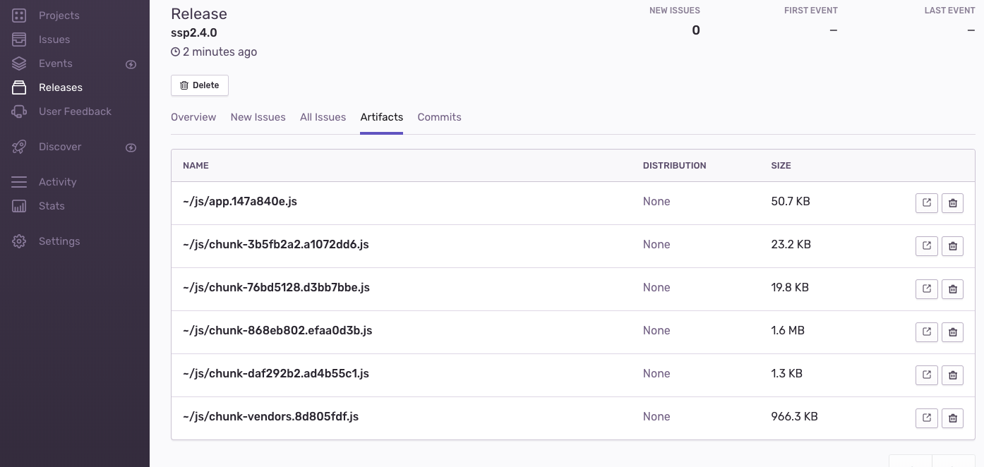 @sentry/webpack-plugin插件,sentry官方给出的自动化方案,可在build时自动上传sourcemap文件。const SentryWebpackPlugin = require('@sentry/webpack-plugin'); module.exports = { ... configureWebpack: config => { //生产and测试环境 let pluginsPro = [ new SentryWebpackPlugin({ include: './dist', ignoreFile: '.sentrycliignore', ignore: ['node_modules', 'webpack.config.js'], configFile: 'sentry.properties', release: 'ssp' + process.env.VERSION //仅仅是sourcemap的名字 }) ]; //开发环境 let pluginsDev = []; if(process.env.ENV === 'production') { config.plugins = [...config.plugins, ...pluginsPro]; } else { // 为开发环境修改配置... config.plugins = [...config.plugins, ...pluginsDev]; } } };注意release字段要与main.js中的release字段相同,这样才能对应上。